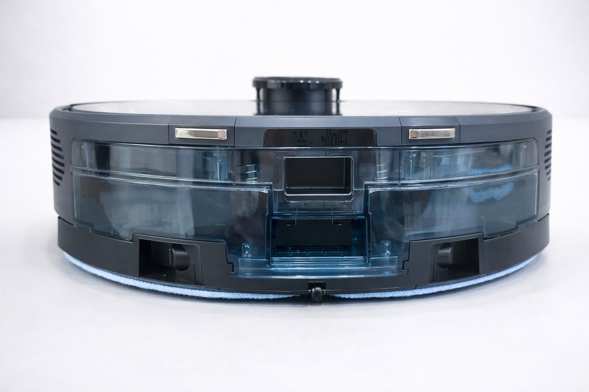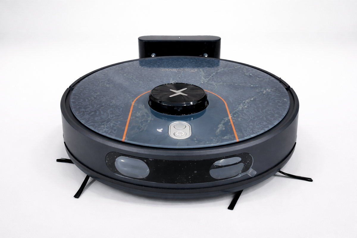 Внешне Neatsvor X700 Pro выглядит строго и аккуратно. Черный корпус из высокопрочного ABS-пластика с элементами закаленного стекла смотрится дороже своей стоимости. Высота всего 10 см, благодаря чему робот спокойно заезжает под кровати, диваны и шкафы — именно там, где чаще всего скапливается пыль.