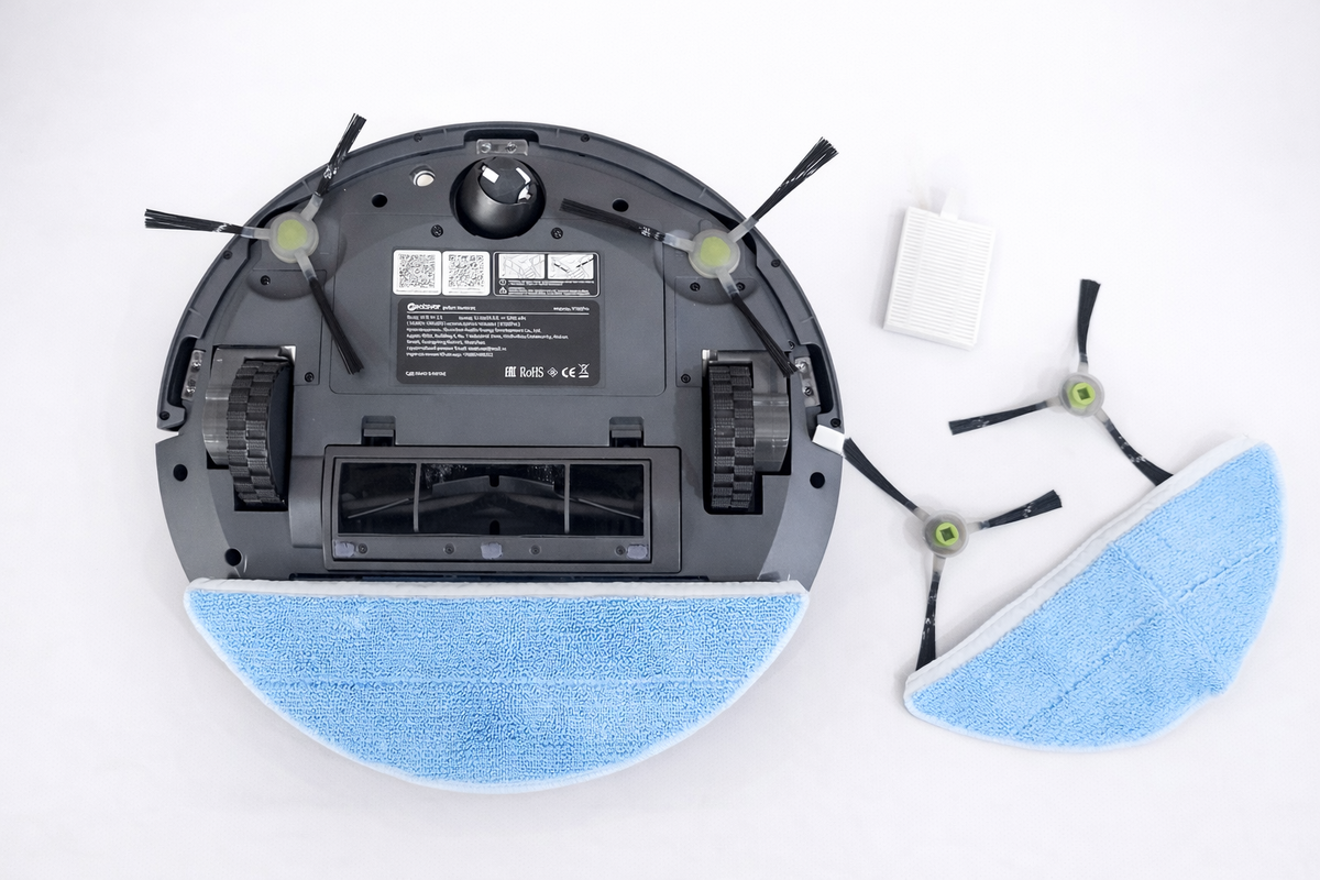 Отдельно отметим влажную уборку. Мы протестировали её на плитке и ламинате — робот аккуратно и равномерно протирает поверхность, не оставляя разводов. Очень удобно, что при влажной уборке он не заезжает на ковры, даже если они рядом с зоной уборки — это реально экономит время, так как нет необходимости вручную переставлять ковры. Резервуар на 350 мл оказался достаточным для уборки квартиры около 70 м² без дозаправки водой.
